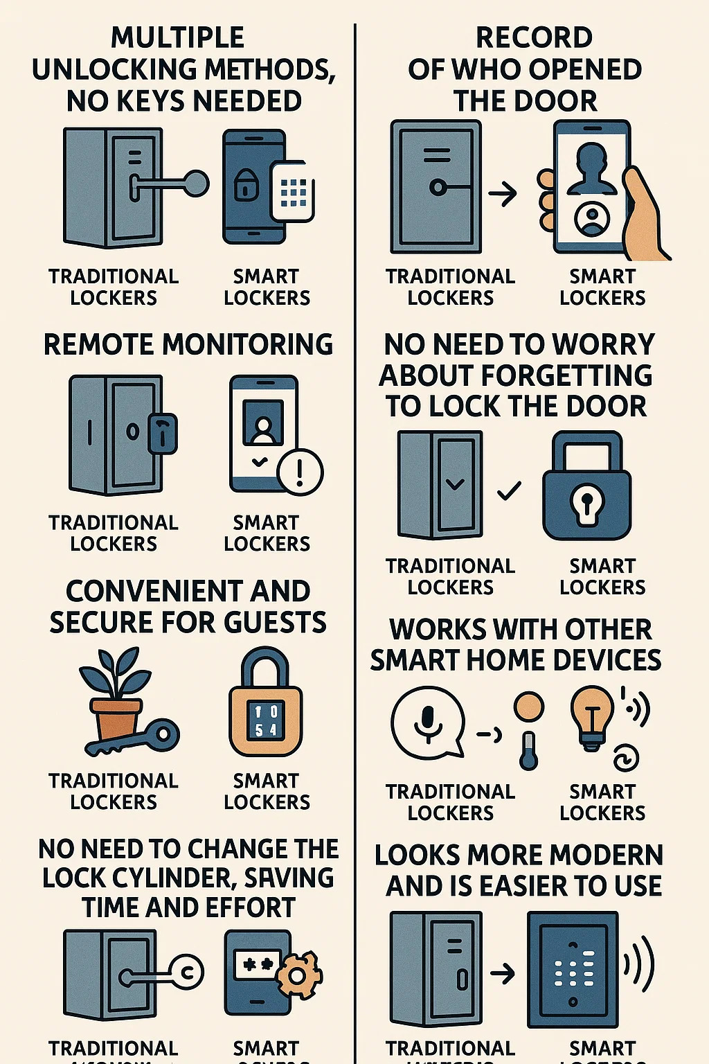 기존 락커에 비해 스마트 사물함 몇 가지 실질적인 이점을 제공합니다.