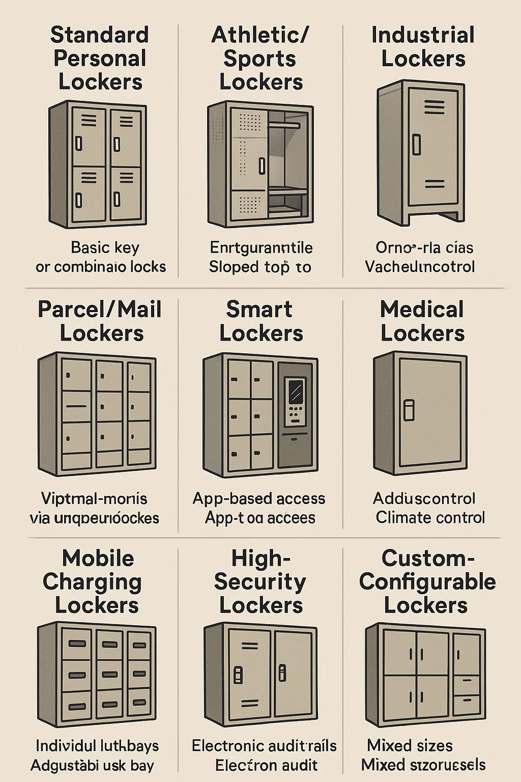 사물함은 디자인, 기능, 배포 상황에 따라 분류됩니다. 다음은 일반적인 유형에 대한 분석입니다.