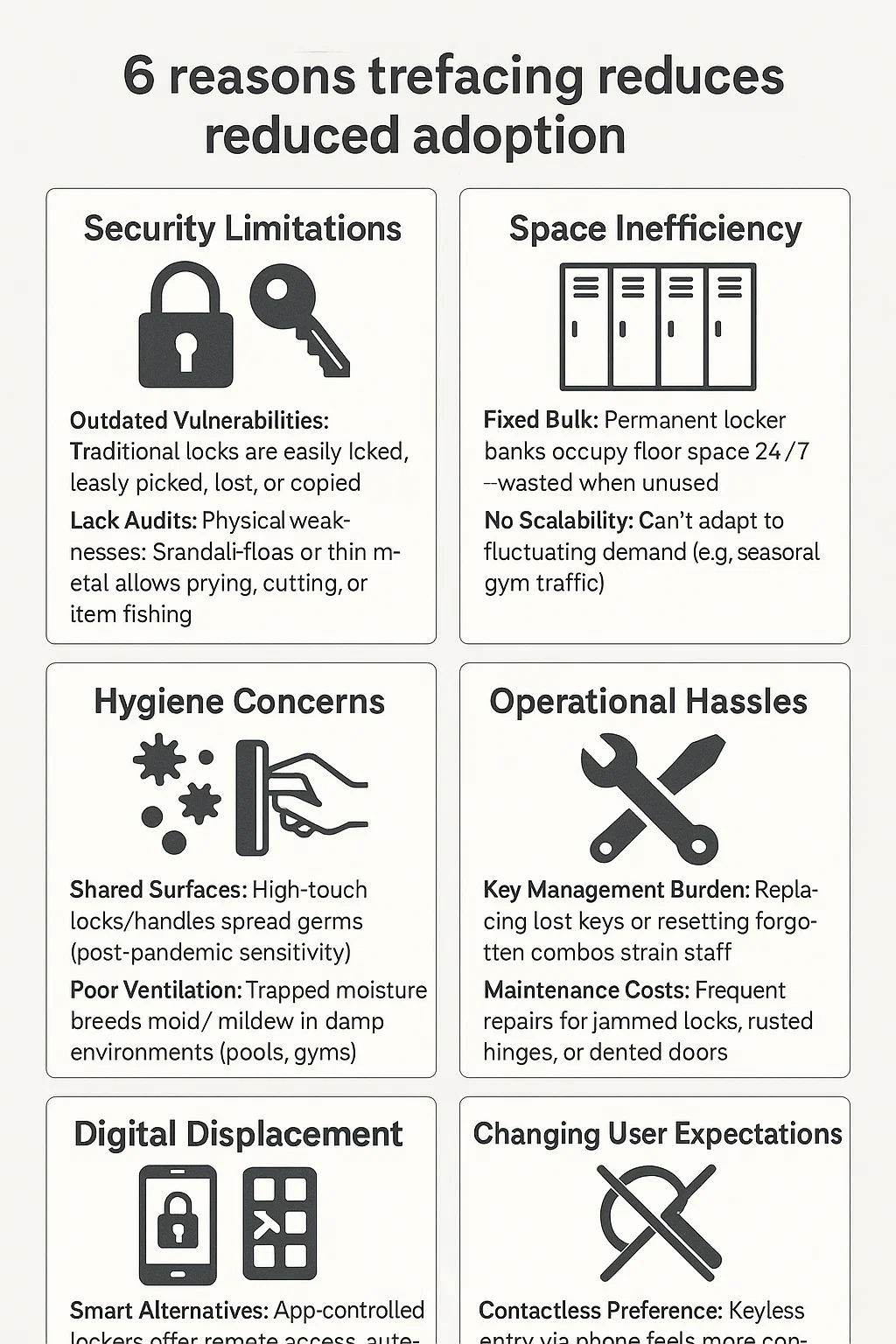 키 관리 부담: 분실한 키를 교체하거나 잊어버린 콤보를 재설정하면 직원에게 부담이 됩니다.